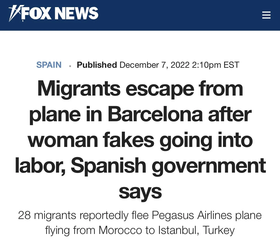 A flight from Casablanca to Istanbul (Turkey: a non-visa destination for Moroccans) landed early due to an emergency landing at Barcelona's El Prat airport. A pregnant woman onboard the flight claimed that her "water broke," so the flight attendant tried to help her, prompting an emergency landing.